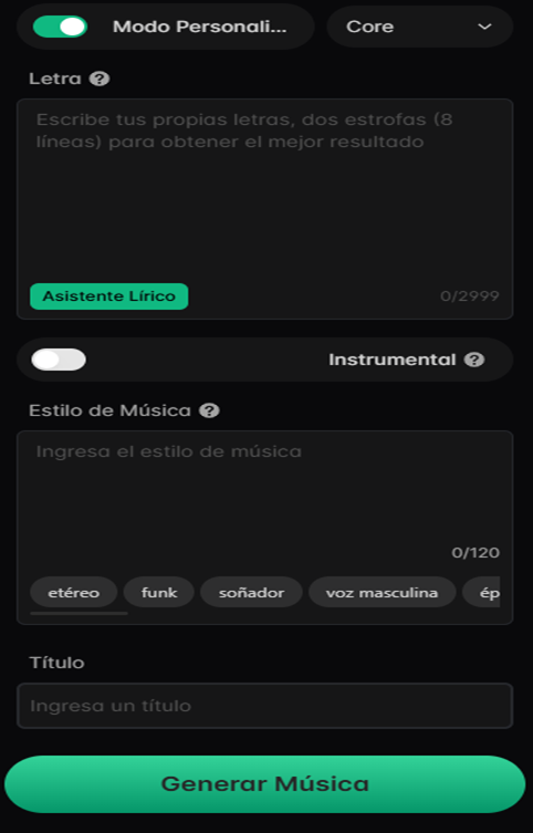 personalizado, que te permite elegir el estilo de la canción y la letra que esta
